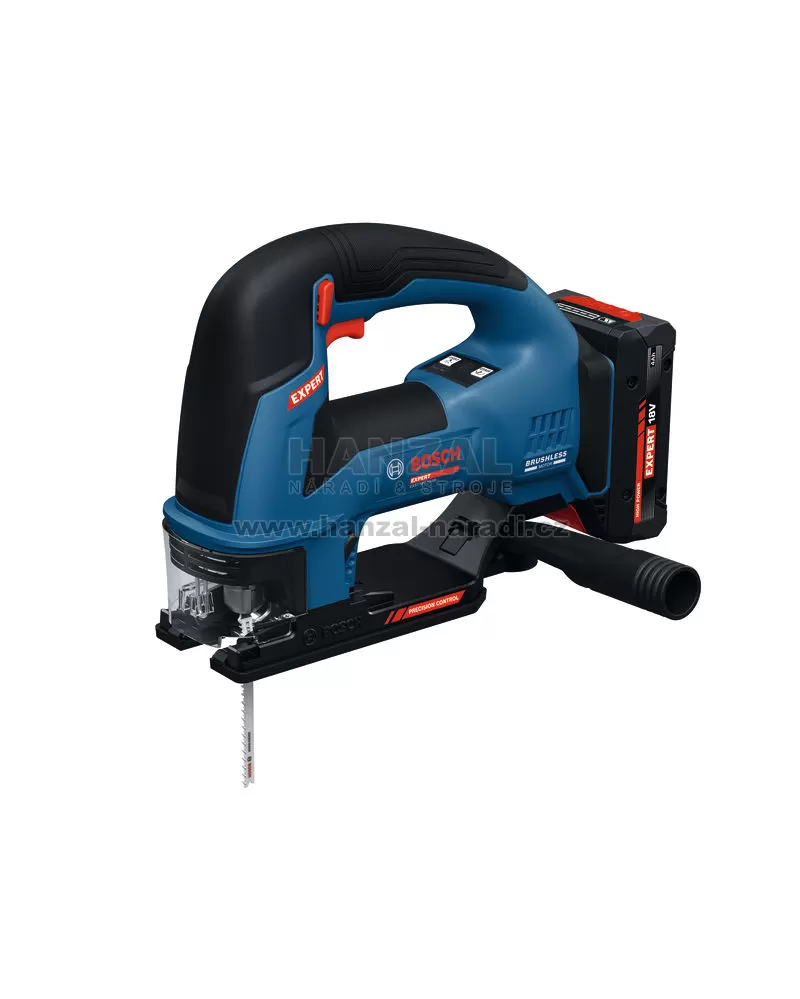 18V přímočará pila EXST18V-155B EXPERT s klenutou rukojetí nabízí špičkovou přesnost. Její vedení pilového listu zabraňuje ohýbání listu i v malých obloucích a poskytuje dokonalou přesnost. Intuitivní ergonomický design s horní úchopovou oblastí a spoušť s proměnnou rychlostí umožňují dokonalé ovládání nářadí a vynikající přesnost řezání. Přímočará pila je dodávána s pokročilou ochranou uživatele: Funkce Drop Control minimalizuje riziko zranění tím, že při pádu se nářadí okamžitě vypne. Nabízí spolehlivé odsávání prachu pomocí snadno upevnitelných adaptérů s kloubem pro flexibilní umístění sací hadice a pohodlným spínačem ZAPNUTÍ/VYPNUTÍ pro nejlepší výsledky. Díky příjemné ergonomii lze bez námahy dosáhnout na spoušť s proměnnou rychlostí pro zapnutí a vypnutí a pohodlné a plynulé nastavení rychlosti. HMI nářadí umožňuje snadné nastavení 6stupňové volby rychlosti a světla LED a také dokonale zobrazuje stav nářadí a akumulátoru