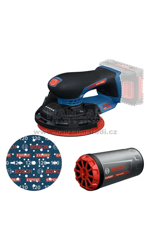 | Vysvětlení k hvězdičce EXPERT | oproti GEX 18V-150-3 Professional, interní test na suché borovici, konstantní zatížení 20 N na nástroj, nový kotouč, plně nabitý akumulátor |