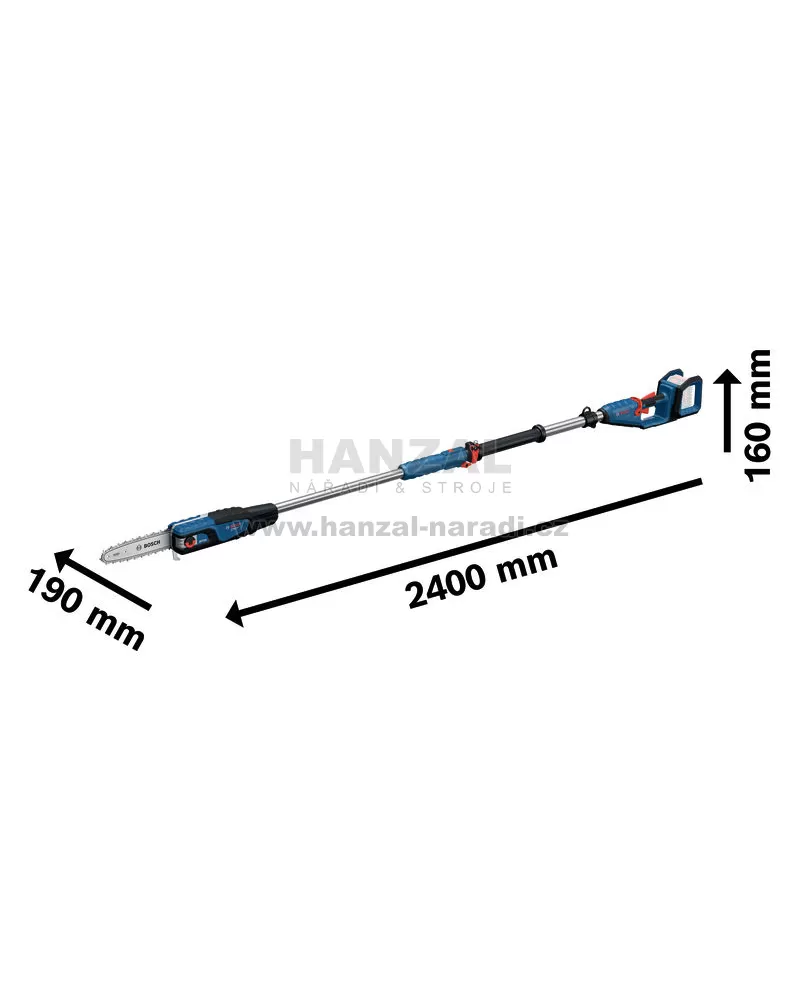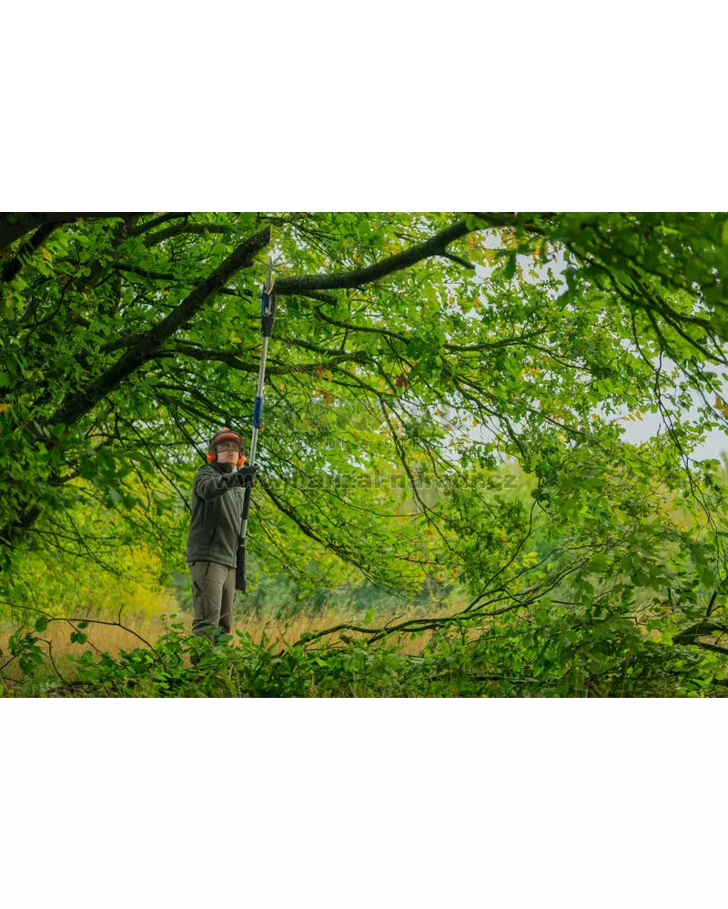 • Snadno stříhá vysoké stromy díky 2,9 m dlouhé teleskopické tyči