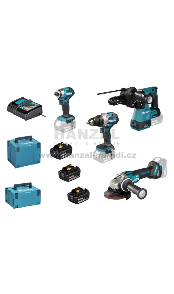 • Dodávané příslušenství : rychlonabíječka DC18RC, 3 x akumulátor BL1850B, 2 x Makpac