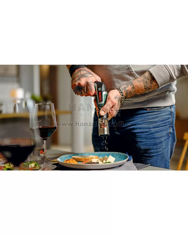 • Díky nástavcům funguje víceúčelově jako vrtačka, otvírák, řezák a mnoho dalšího