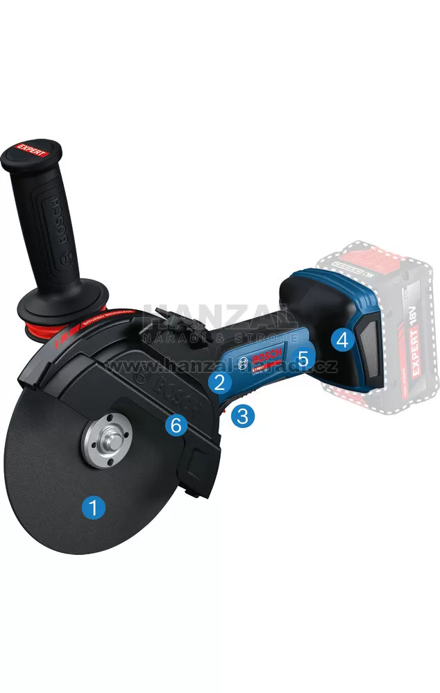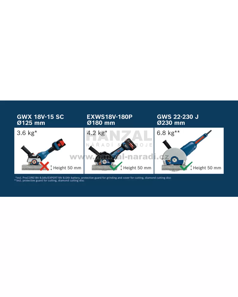 Dlouhá verze, část 2 EXWS18V-180P EXPERT dokonale řeže všechny druhy kovů, beton, cihly a dlaždice. Kompatibilní s 18V systémem Bosch Professional a aliancí akumulátorů různých značek AMPShare.