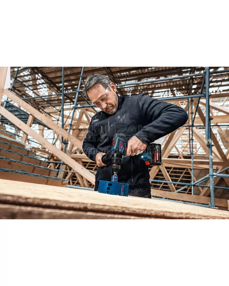EXSB18V-150 EXPERT poskytuje optimální výsledky při vrtání a šroubování do dřeva, zdiva nebo kovu, zejména v případě velkých průměrů, např. děrovky až do 150 mm. Kompatibilní s 18V systémem Bosch Professional a aliancí akumulátorů různých značek AMPShare.