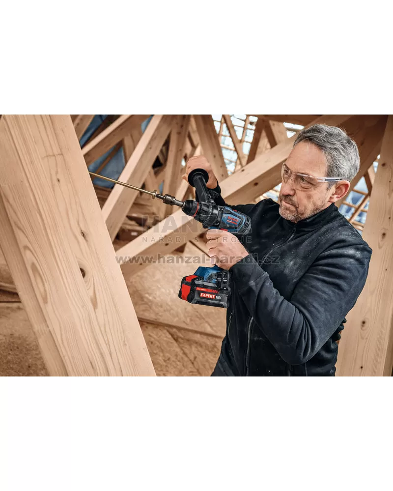 EXSB18V-150 EXPERT je špičkový příklepový vrtací šroubovák s bezkonkurenční výkonností a kontrolou při široké škále šroubovacích a vrtacích prací s 30 000 bpm. Je dokonalou volbou pro pozoruhodně rychlý postup práce díky bezuhlíkovému motoru s technologií BITURBO, mimořádně výkonným akumulátorům EXPERT a maximálnímu krouticímu momentu 150 Nm. Funkce KickBack Control minimalizuje riziko zranění při zaseknutí vrtáku. Tuto funkci lze vypnout a zapnout. Přesná elektronická detekce úhlu zajišťuje správný úhel dlouhých šroubů. Příklepový vrtací šroubovák je díky kovovému vrtacímu sklíčidlu 13 mm a kovové převodovce extrémně spolehlivý a robustní. Dodává se s pomocnou rukojetí, která se bez námahy nastavuje v každé poloze. Rychlý výběr režimu umožňuje snadné přepínání mezi vrtáním, příklepovým vrtáním a šroubováním.