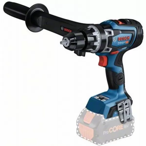 Vrtací šroubovák je kompatibilní se všemi 18V akumulátory a nabíječkami Bosch Professional (profesionální 18V systém); pro maximální výkonnost použijte ProCORE18V ≥ 5,5 Ah. Kompatibilní také s AMPShare, aliancí akumulátorů více značek.