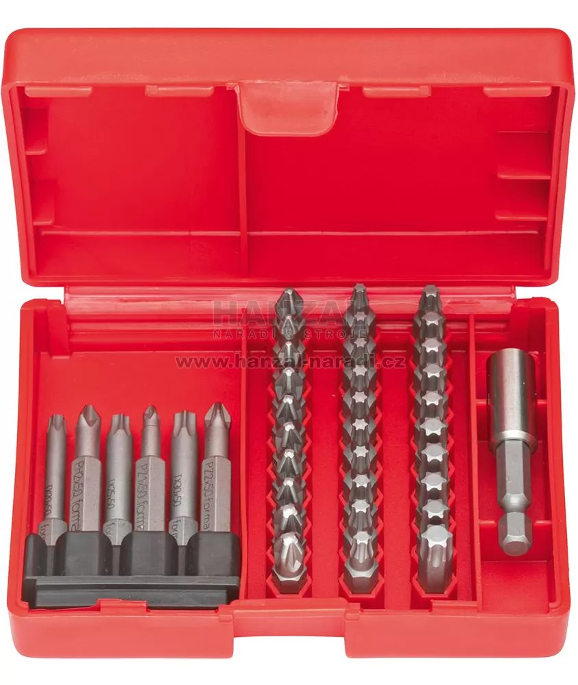 Provedení: S houževnatými bity v plastovém boxu. Bity jsou přehledně uspořádány a dají se rychle a cíleně vyjmout.