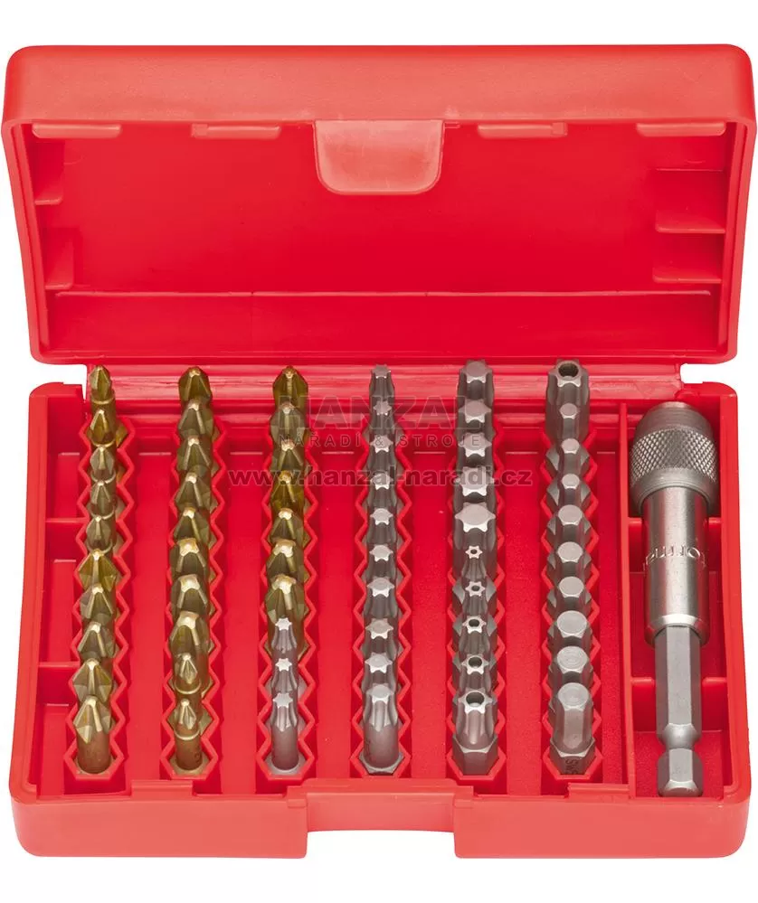 Provedení: S houževnatými a extra tvrdými bity v plastovém boxu. Bity jsou přehledně uspořádány a dají se rychle a cíleně vyjmout.