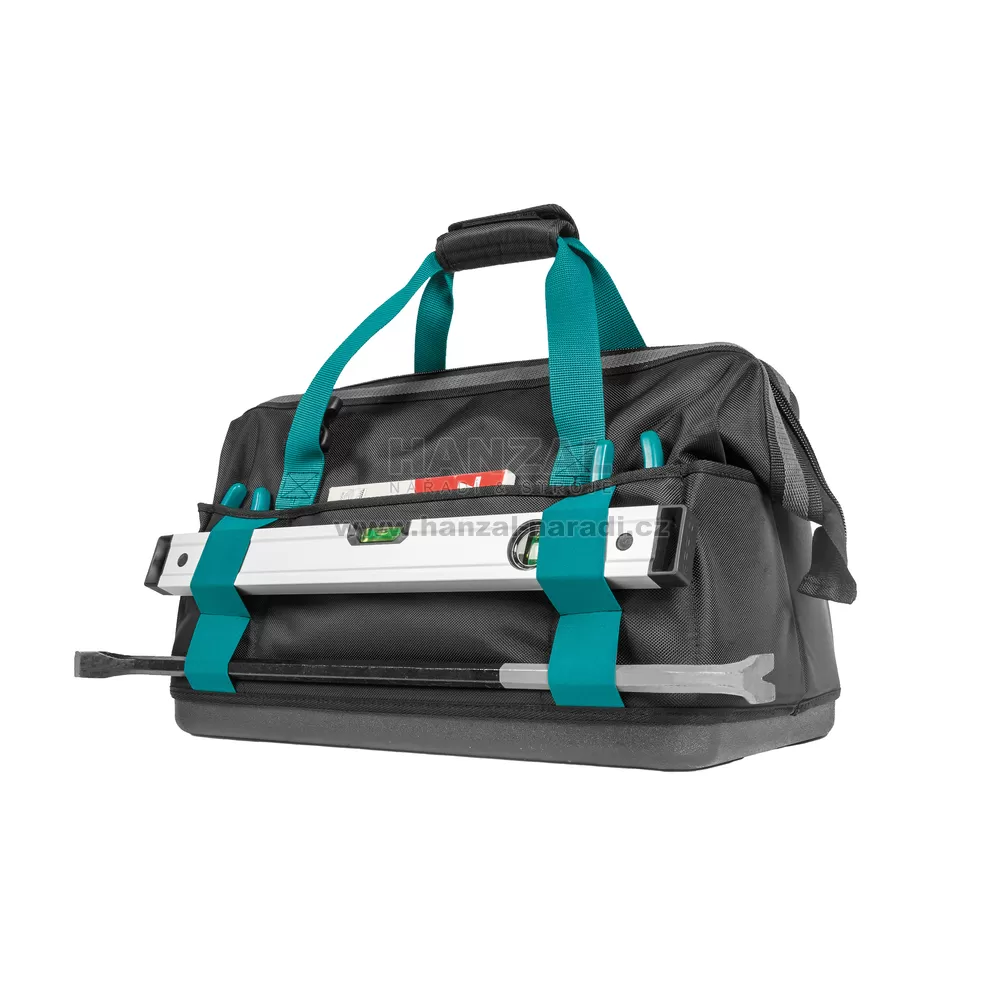 Brašna na nářadí s extra velkým, zesíleným otvorem a objemem 34 litrů. Brašna na nářadí se zipem a velkým, zesíleným otvorem pro jasný přehled o obsahu. Brašna má 20 vnitřních a vnějších přihrádek a elastické popruhy pro bezpečné uložení příslušenství a ručního nářadí. Dno je vodotěsné a dodatečně zesílené. Součástí je popruh ze systému Strap-Belt.