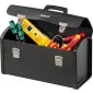 Provedení: Skořepina dna a boční díly z plastu ABS, odolným proti opotřebení, rezistentním vůči vlhkosti, klapka z ražené robustní hovězí kůže, s ergonomicky tvarovaným držadlem na nošení. Velmi stabilní a s ochrannými, integrovanými kluznými lištami. Zamykatelná 2 zástrčnými zámky. Dodává se bez obsahu.