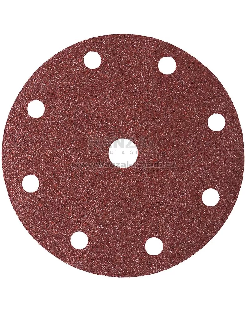 Brusný výsek na suchý zip , děrovaný, Ø 150 mm, 8 otvorů k odsávání Ø 10 mm a středový otvor Ø 17 mm