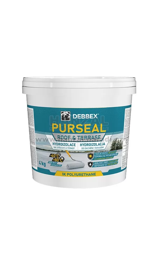 Hydroizolace na střechy a terasy PURSEAL je polyuretanový hydroizolační nátěr na střechy, asfaltové pásy, bitumenové nátěry, terasy s rohožemi, nátěr PU pěny na její ochranu či kovové povrchy. Má výbornou odolnost proti UV záření a teplotám až do -40 °C s odolností proti mechanickému namáhání. Pro kovové povrchy je nutné použít PRIMER METAL a pro nasákavé podklady jako je beton penetrujte Primerem ALFA . Na penetrovaný povrch udělejte minimálně dva nátěry hydroizolací PURSEAL. Vždy nechejte mezi vrstvami nátěr pořádně vyschnout (minimálně 24 hodin). Každá nová vrstva by měla být vždy otočená o 90° oproti té předchozí. Pokud je požadavek na vysoké nároky pro přemostění trhlin, doporučujeme mezi vrstvami použít netkanou textilii Den Braven HB-20. Spotřeba nátěru pro dvě vrstvy je 1,3 kg/m 2 . Charakteristika odolná UV finální vrstva odolnost proti stojaté vodě teplotní odolnost od -40 °C do +80 °C proti mechanickému poškození velmi pružný nátěr Použití střechy a terasy asfaltové pásy bitumenové nátěry terasy s rohožemi pro nátěry PU pěny pro její ochranu kovové povrchy namáhané povrchy Skladování v originálním neotevřeném obalu 2 roky produkt nesmí před aplikací zmrznout aplikační teplota +5 °C až +35 °C Identifikace nebezpečnosti P101 Je-li nutná lékařská pomoc, mějte po ruce obal nebo štítek výrobku. P102 Uchovávejte mimo dosah dětí. P103 Pečlivě si přečtěte všechny pokyny a řiďte se jimi. P501 Odstraňte obsah/obal ve sběrném místě. EUH208 Obsahuje Reakční směs: 5-chlor-2-methylisothiazol-3(2H)-on a 2-methylisothiazol-3(2H)-on (3:1). Může vyvolat alergickou reakci. EUH210 Na vyžádání je k dispozici bezpečnostní list. EUH211 Pozor! Při postřiku se mohou vytvářet nebezpečné respirabilní kapičky. Nevdechujte aerosoly nebo mlhu. Tento produkt neobsahuje žádné látky, které jsou vyhodnoceny jako PBT nebo vPvB v koncentraci 0,1 %25 hmotnostních nebo vyšší. Tento produkt neobsahuje SVHC látku v koncentraci 0,1 %25 hmotnostních nebo vyšší. Tento produkt neobsahuje endokrinní disruptory v koncentraci 0,1 %25 hmotnostních nebo vyšší.