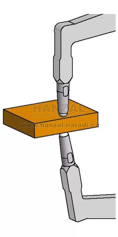 Provedení: Vždy jedno pevné a jedno pohyblivé rameno snímače, výsledek měření přímo při vysunutí pohyblivého ramene. Pohyblivé snímací rameno je zalomené, měřicí kontakty z tvrdokovu. Dodáváme v přepravní krabici.