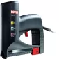 Provedení: S dlouhým nosem pro přesnou práci na těžko přístupných místech, expresní řešení problémů, nastavení síly nárazu pro měkké nebo tvrdé dřevo, doraz vzdálenosti, uvolnění bezpečnostního zařízení a okénko pro sledování sponek. Spodní nabíjecí mechanismus s bezpečnostním uvolněním pro rychlé a snadné dobíjení.