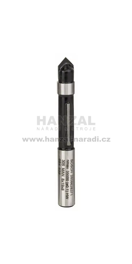 Fazetovací fréza tvaru V, dvoubřitá, tvrdokovová, Bosch 8mm, B11mm, L15mm, G56mm, 45°