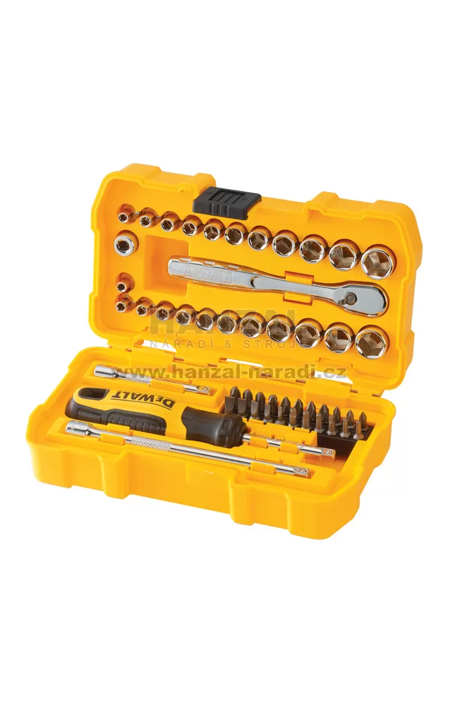 Tato 50dílná 1/4“ sada DEWALT® obsahuje všestranný sortiment nástrčných hlavic, ráčen a klíčů vyrobených z odolné chrom-vanadové oceli. Jejich leštěný povrch je zárukou odolnosti proti korozi a snadné údržby. Sada se dodává v přehledném a praktickém kufříku pro pohodlné skladování a přenášení, a proto je ideální pro profesionální i domácí použití.