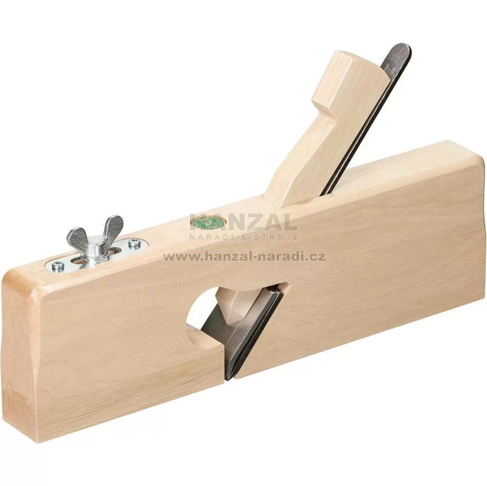 Provedení: Z habrového dřeva, lakovaný, s přestavitelnou spodní plochou a s hoblíkovým nožem připraveným k použití. S řezným úhlem 50°.