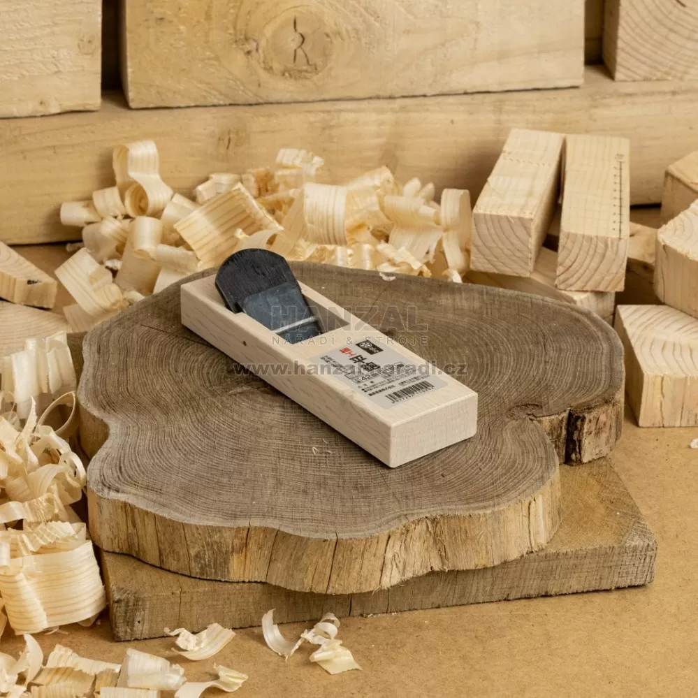 Kvalitní japonský hoblík menších rozměrů typu Hira Kanna pro běžné truhlářské práce. Hoblíky typu Kanna mají velice jednoduché zpracování. Čepel je vyrobena z kvalitní japonské laminované dvouvrstvé oceli a před prvním použitím je jí třeba poklepem kladiva napasovat do těla hoblíku, čímž si zároveň nastavíte velikost hobliny odebíraného materiálu. Pokud chcete třísku ztenčit, stačí udeřit do těla hoblíku. Tloušťka třísky a jemnost povrchu vychází z osobního nastavení želízka. V ideálním případě by čepel měla vystupovat 0,05 až 0,2 mm z těla hoblíku.