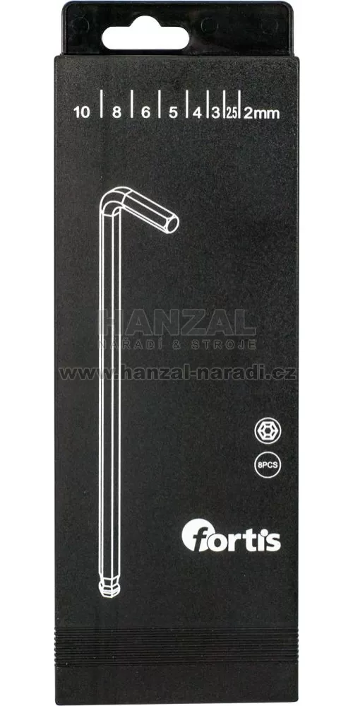 Sada imbus klíčů ve výsuvném boxu 8ks 2-10mm dlouhá kul. hlava FORTIS