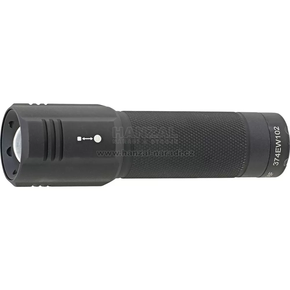 Provedení: Hliníkový kryt, CREE LED, třístupňové hlavní světlo 25/50/100%, s funkcí blikání SOS, funkce Fokus pro zaostřené osvětlení. Dodává se se 3 bateriemi C/LR14.