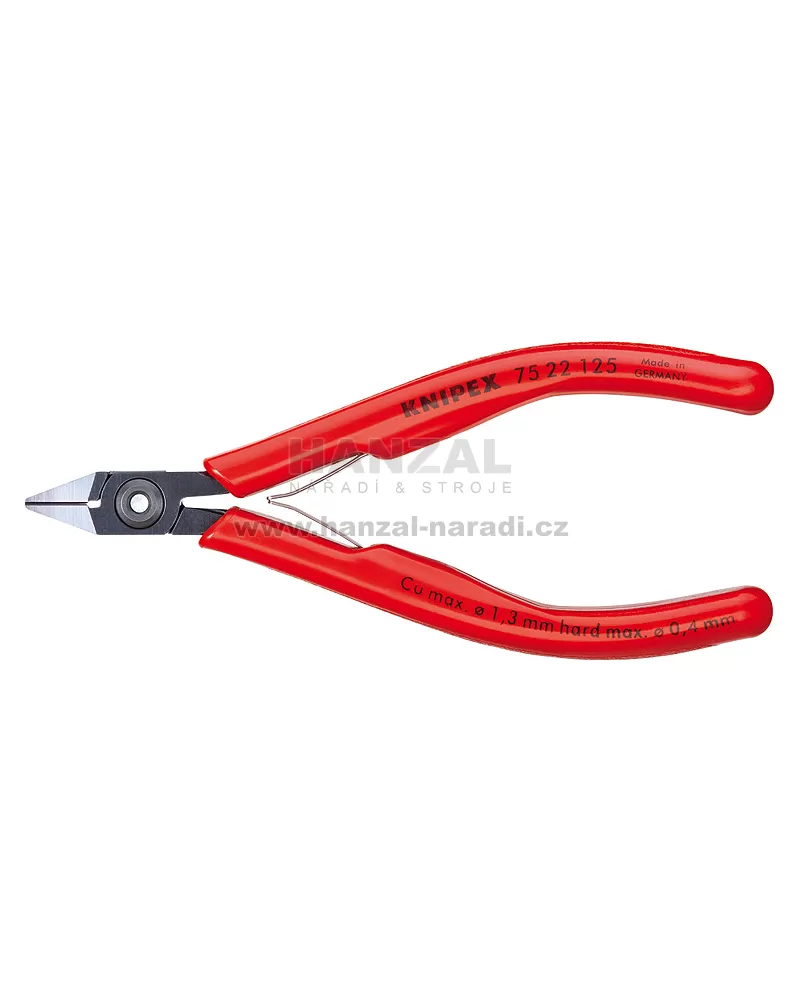 Boční štípací kleště pro elektroniku Provedení: DIN ISO 9654. Kované ze speciální nástrojové oceli, kalené a popouštěné v oleji, špičatá leštěná hlava, s rozevírací pružinou a průchozím bezvůlovým kloubem. Břity, dodatečně indukčně tvrzené....