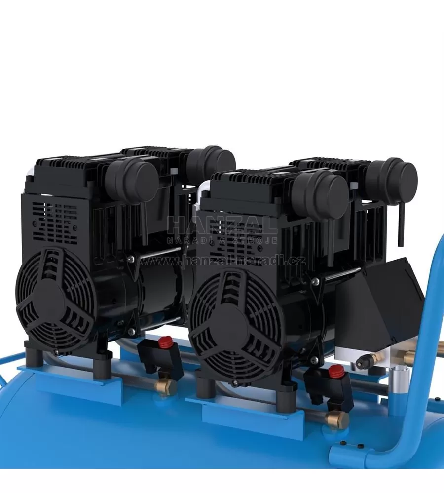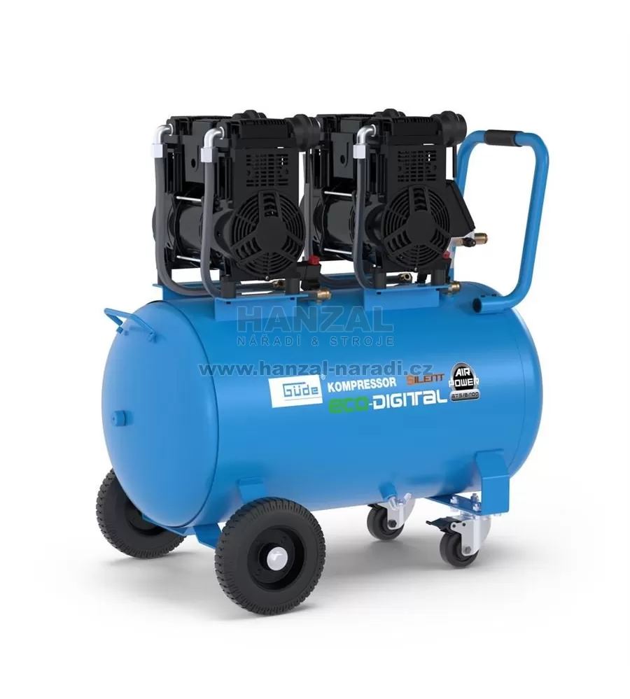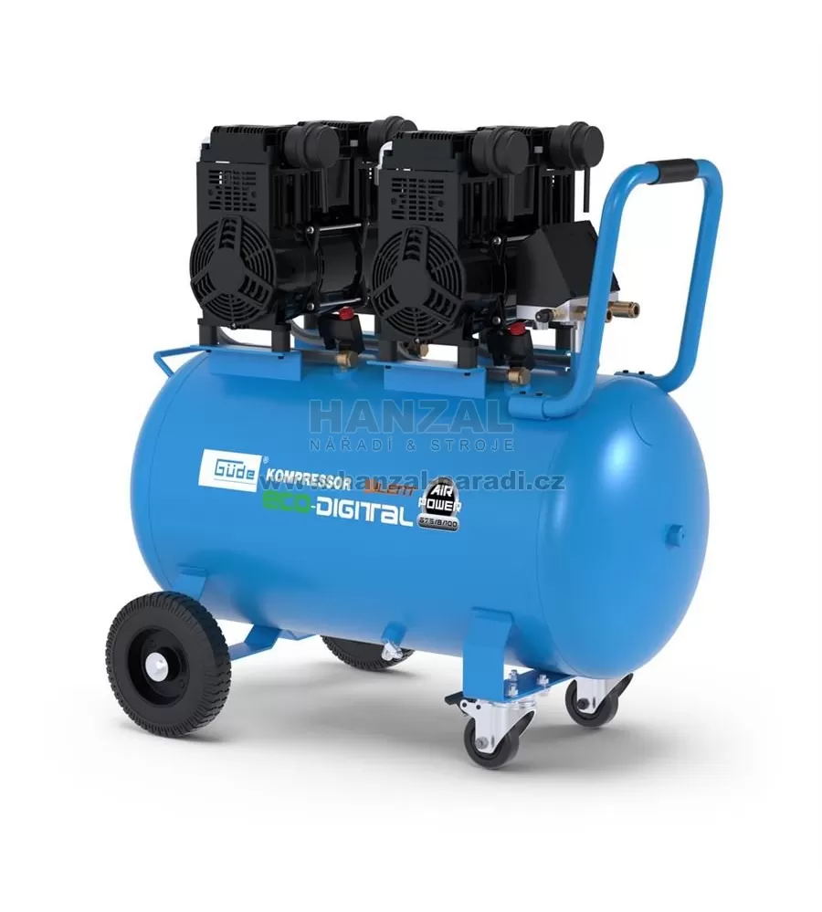 Bezolejový kompresor GÜDE, určený pro provozy a zařízení, vyžadující nehlučný chod strojů. Výkonný čtyřválcový tichý kompresor s velkou 100litrovou nádrží se sacím výkonem 654 l/min a pracovním tlakem 8 barů pokrývá požadavky na vzduch nejběžnějšího pneumatického nářadí. Dvě bezolejové a bezúdržbové dvoupístové jednotky se spouštějí každá s časovým zpožděním prostřednictvím přepínacího relé, aby se zabránilo napěťovým špičkám při spouštění, zejména při nízkých teplotách.