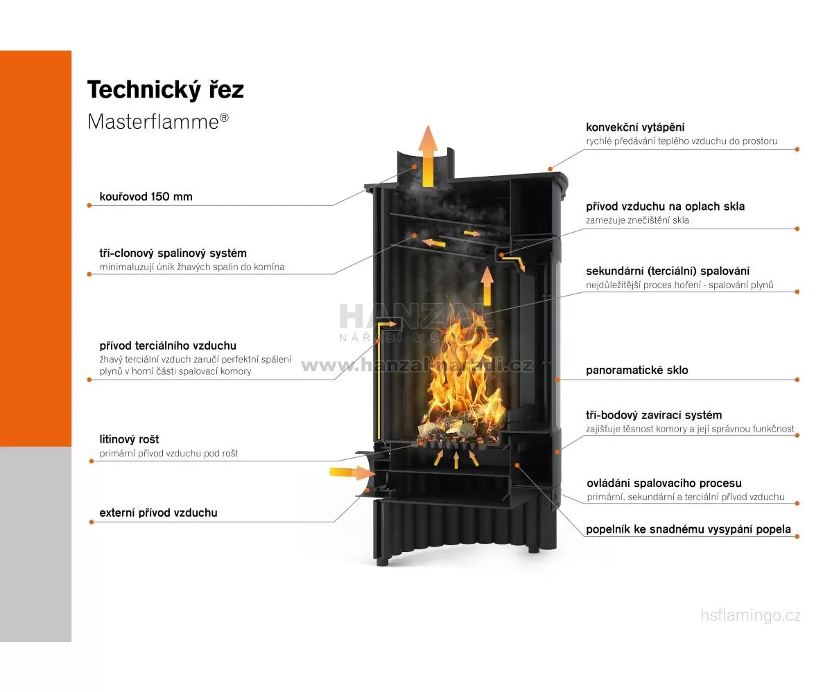 krbová kamna Masterflamme lze použít při vytápění obytných a rekreačních objektů. Díky rychlé vytápěcí schopnosti a velikosti spalovací komory jsou také velice oblíbená ve výrobních dílnách, skladech a jiných průmyslových prostorech. Krbová kamna Masterflamme mají díky své unikátní konstrukci jedinečnou schopnost rychlé tvorby tepla a jeho plynulou a rovnoměrnou distribuci. Studený vzduch je vespodu nasáván do trubek které tvoří přímo spalovací komoru. Tím dochází k bezprostřednímu ohřevu vzduchu a jeho vyfukování zpět do místnosti. Díky tomuto “Fénovému efektu” umí kamna Masterflamme během velice krátké doby předat velké množství tepla a rovnoměrně ho distribuovat do vytápěných prostor.