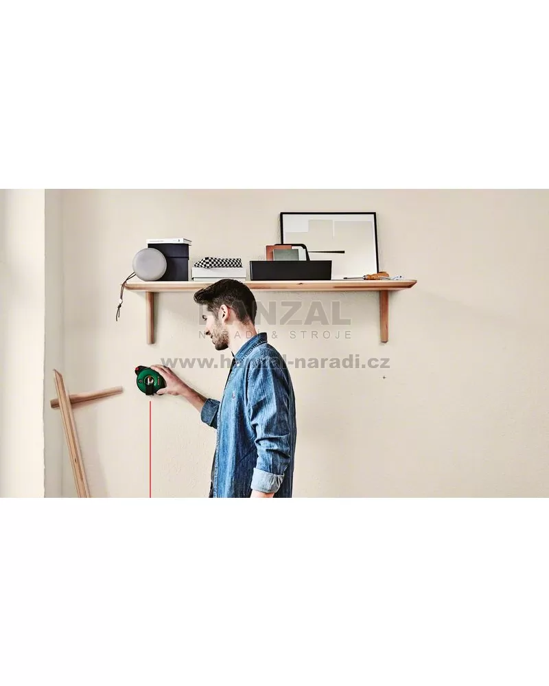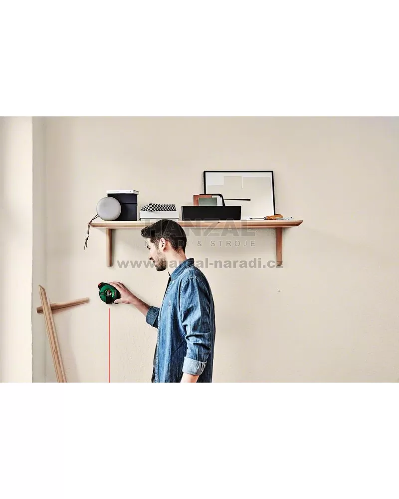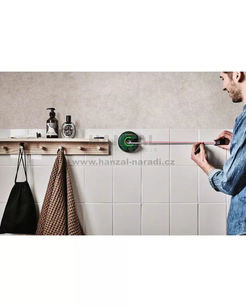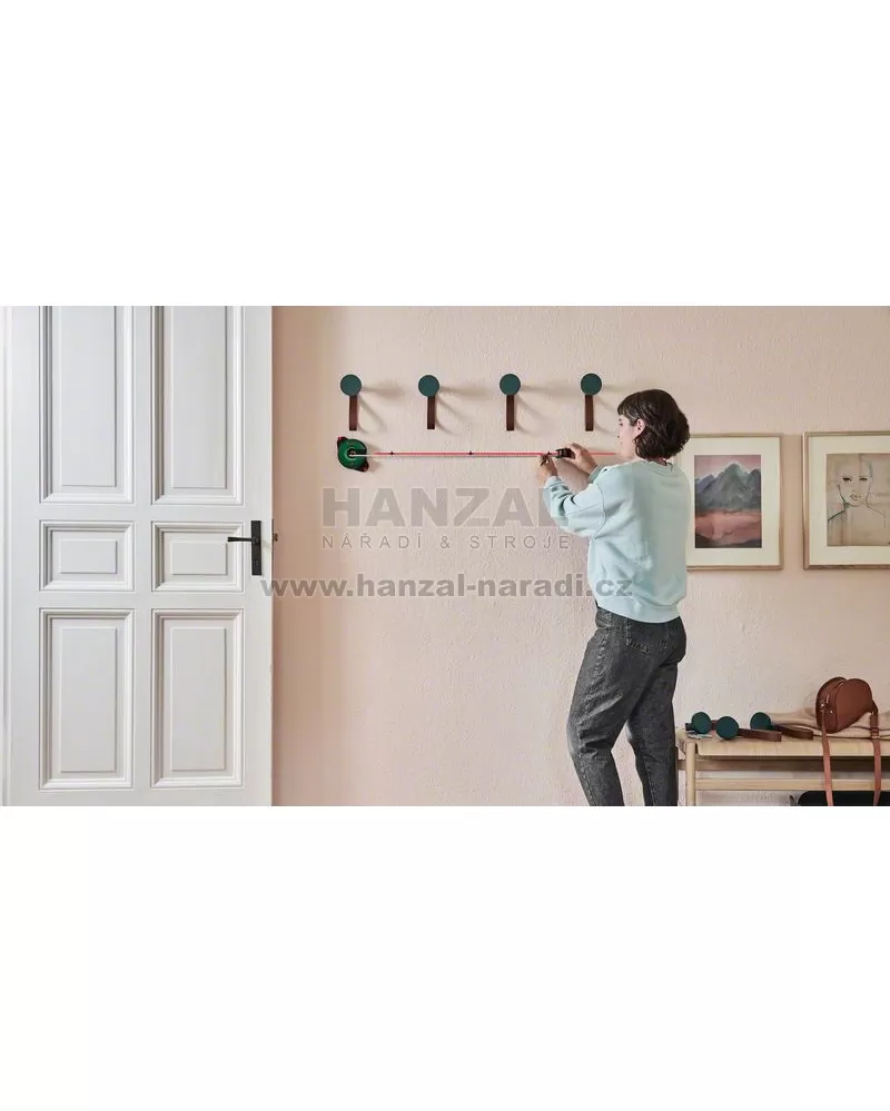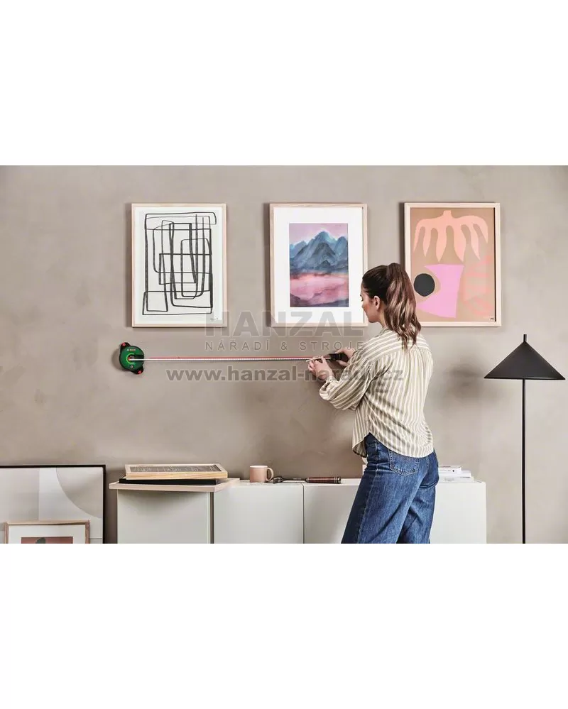 • Vše v jednom: čárový laser s integrovaným měřicím pásmem pro snadné věšení, vyrovnávání a měření