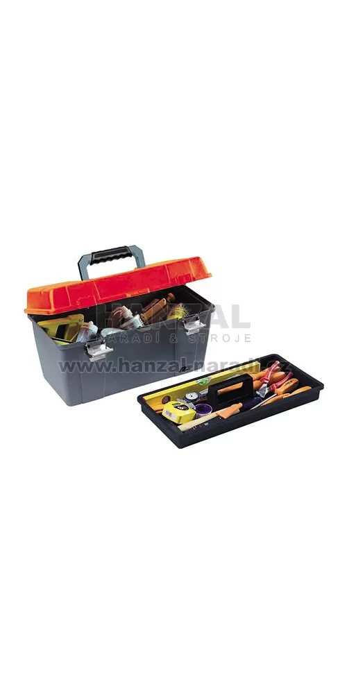 Provedení: Z plastu, odolném proti nárazu. S odnímatelným nosítkem pro drobné díly a volné nářadí. Rukojeť potažená gumou. Dodává se bez obsahu.