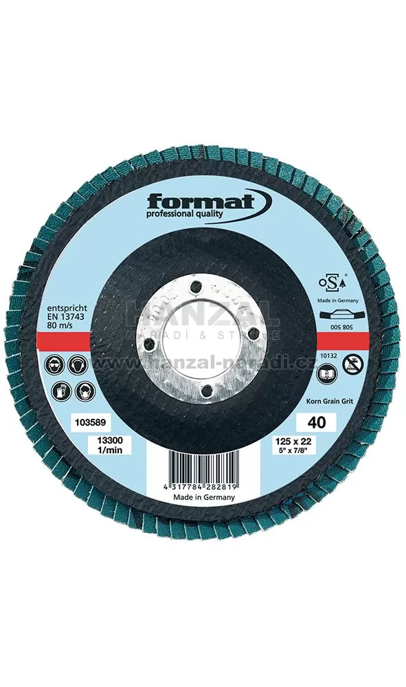 Lamelový kotouč, pojivo umělá pryskyřice, vypouklý, 125mm K40 FORMAT