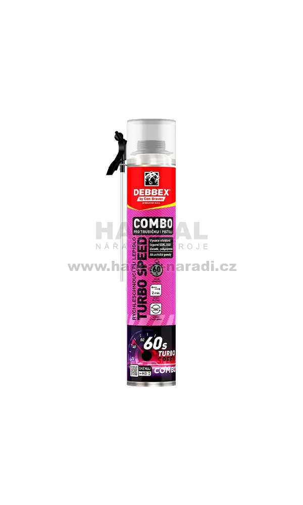 Rychleschnoucí PU lepidlo Turbo Speed COMBO je jednosložková pěna, speciálně vyvinutá pro rychlé lepení s počátkem tuhnutí již po 60 sekundách. Možnost aplikace pistolí i trubičkou 2v1. Díky vysoké přilnavosti a lepivosti k různým stavebním podkladům, jako je beton, dřevo, kámen nebo polystyren, je ideální pro široké spektrum použití. Po vytvrzení je objemově stálé a vytváří kvalitní, rovnoměrnou strukturu. Charakteristika aplikace trubičkou i pistolí rychle vytvrzující, počátek tuhnutí po 60 sekundách možnost korekce do 2 minut polohovatelná aplikace 360° vysoká přilnavost a lepivost k různým stavebním podkladům po vytvrzení objemově stálá kvalitní rovnoměrná struktura Použití beton, zdivo, kámen, dřevo nebo polystyren apod. lepení EPS a XPS desek lepení sádrokartonu, dřevěných prvků, OSB desek, dekorativních prvků a vnitřních příček Doporučené aplikační pokyny Navlhčit podklad, nanést lepidlo na podklad, opět navlhčit, počkat 60 sekund a spojit prvky k sobě. Nejpozději však do 2 minut po aplikaci. S lepeným prvkem lze ještě 60 sekund manipulovat.Při uskladnění v nízkých teplotách doporučujeme před použitím dózu temperovat při pokojové teplotě po dobu 1 hodiny. Našroubovat na aplikační pistoli a dózu důkladně protřepat (minimálně 30x). Na aplikační pistoli nastavit aretačním šroubem požadované dávkování.