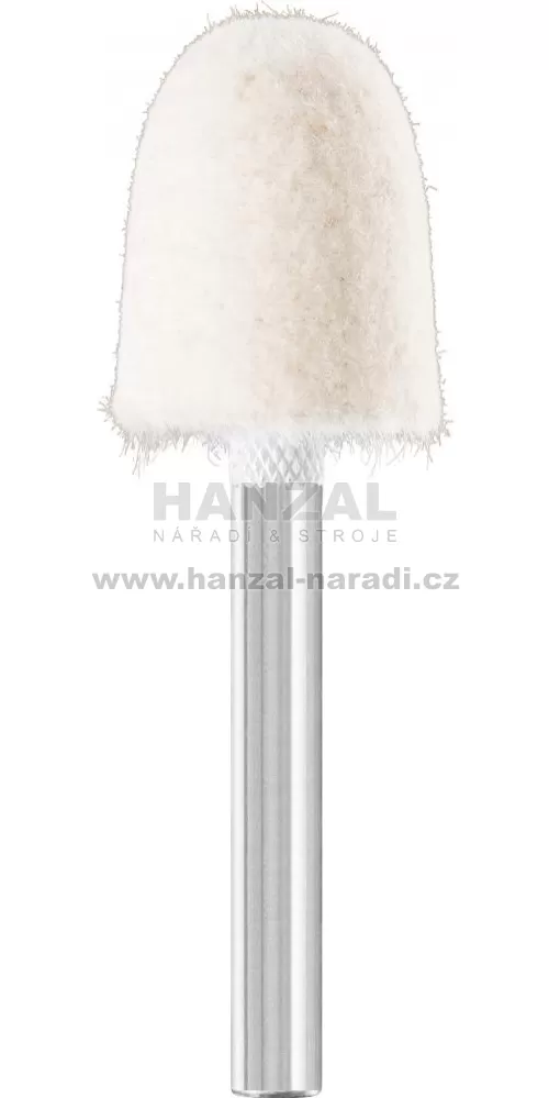 Provedení: Přesné zachování tvaru lešticí stopy díky tvrdosti filcu. Lze používat s libovolnými nástroji, také komplexní konstrukce. Stopka ∅ 6 mm.