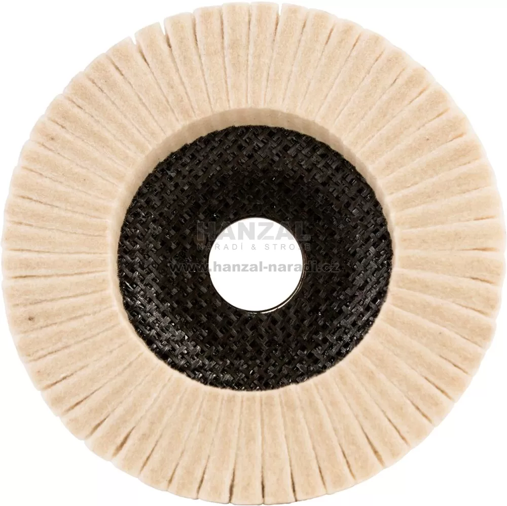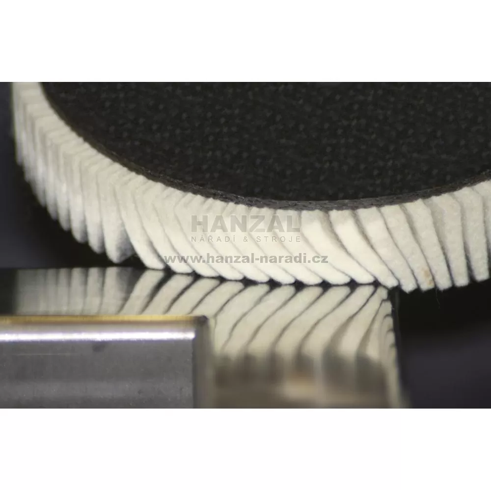 Provedení: 100% přírodní filc na talíři s tkaninou ze skleněných vláken. Lamely kotouče se během leštění přizpůsobí ideálně povrchu a konturám dílce a rovnoměrně rozdělí lešticí pastu. Díky tomu se snižuje tepelné zatížení.