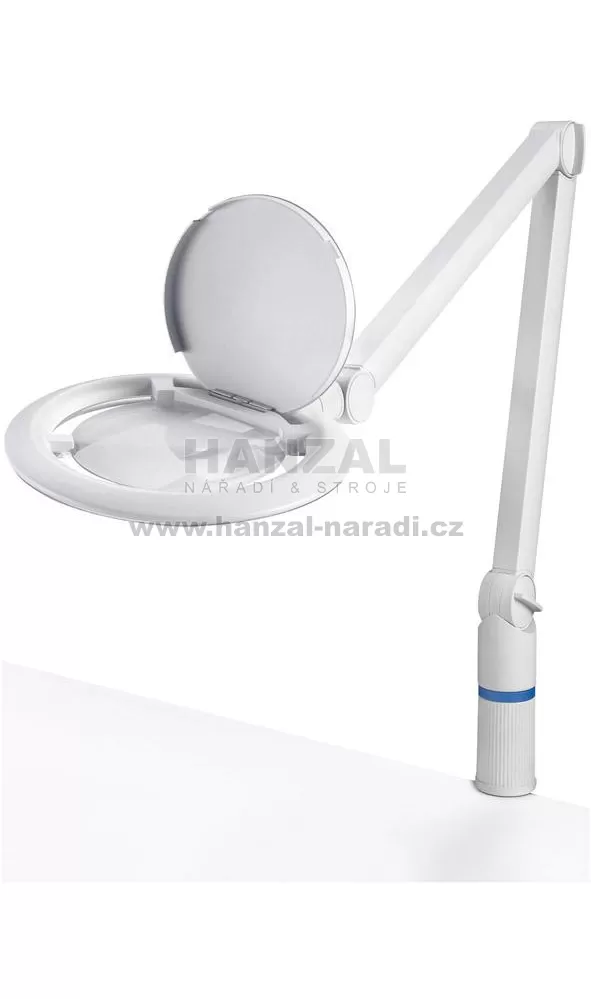 Provedení: Provedení: Asférická nízkohmotnostní čočka z PXM® plastu s povrchovou úpravou cera-tec® coating, odolná proti prasknutí, odolná proti poškrábání jako sklo. Prstencové osvětlení z 84 vysoce výkonných LED diod s dlouhou životností pro osvětlení bez stínů, přepínání mezi kruhovým a segmentovým osvětlením, tři nastavitelné úrovně osvětlení (6000 lx, 3500 lx, 2400 lx), stolní svěrka pro 18-74 mm.