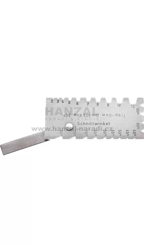 Úhlové a závitové šablony Provedení: Na trapézové Whitworthovy a metrické závity. Pro úhel od 0-30°a 40-80°. Dodávka: baleno jednotlivě. Celý popis