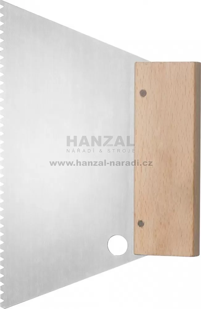 Stěrka na lepidlo Provedení: List lichoběžníkový, s dírou na zavěšení a dřevěnou hřbetní lištou. Celý popis