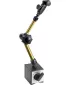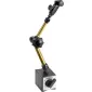 Provedení: Pětiosý kloubový měřicí stojánek, centrální zablokování s pružně uloženou svorkou. Se silným zapínatelným a vypínatelným magnetem, s prizmatickým sloupkem, rychlo-upínkou v každé pozici. Ramena ze zlatě eloxované vysoce pevné hliníkové slitiny, libovolně kombinovatelná. S jemným nastavení v horní části pomocí univerzální upínky s otočným kloubem. S úchytem na úchylkoměr Ø 6 a 8 mm a rybinovým držákem.