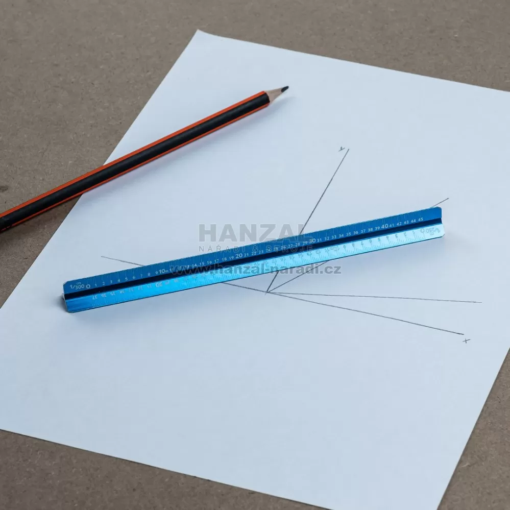 Poměrové pravítko - rýsovací pomůcka pro architekty, designéry a studenty. Jasná nílá stupnice na modrém povrchu pro snadné odečítání hodnot. … Celý popis