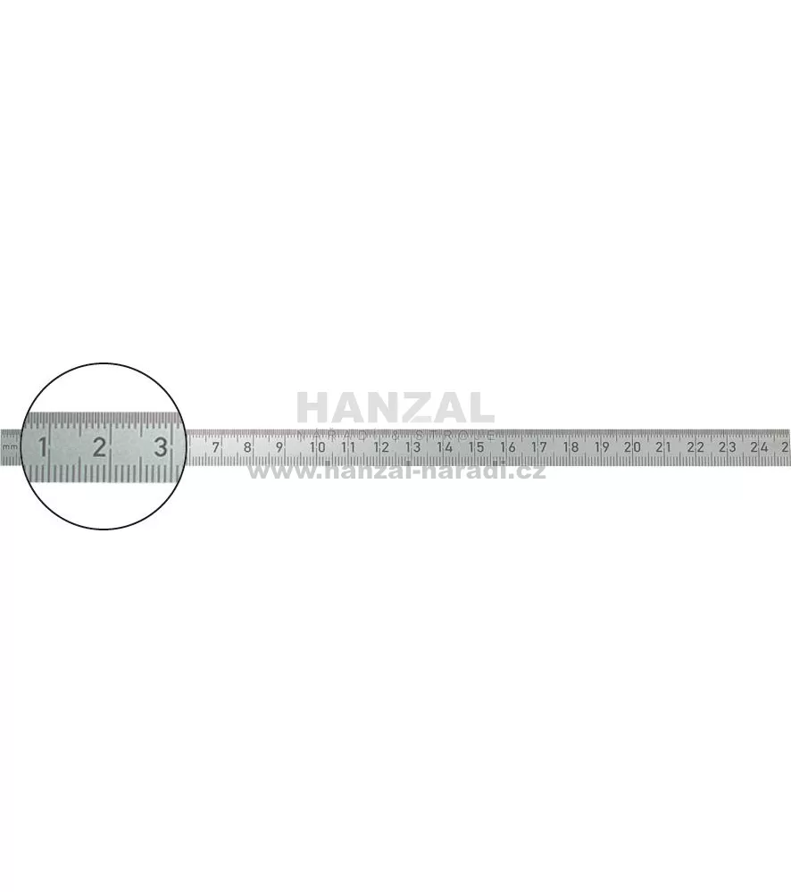 Provedení: Z nerezové, tvrdě válcované, pružinové oceli, matovaný povrch, zaoblené hrany, ES třída přesnosti II, označení od délky 500 mm.