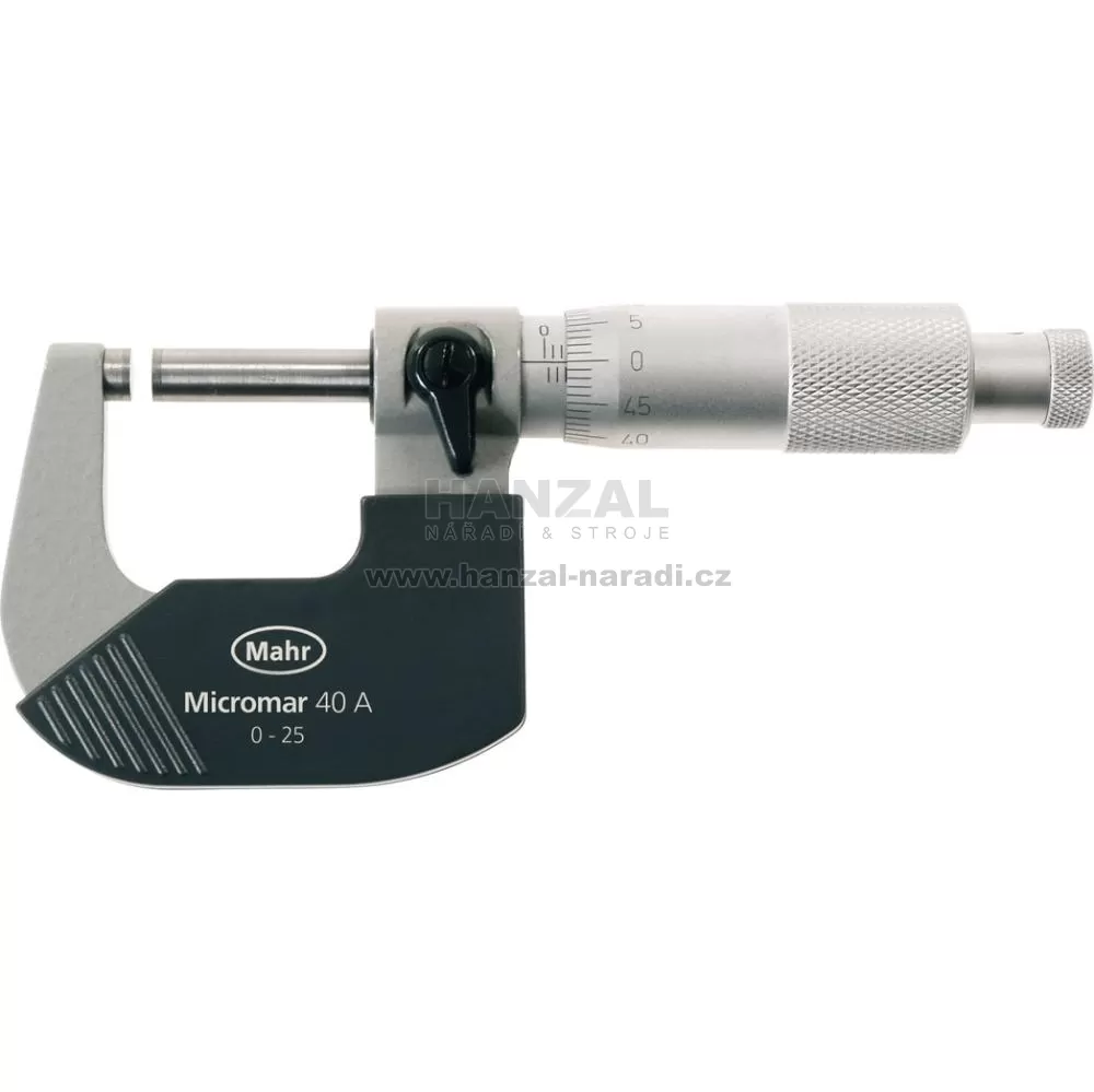 Provedení: Stupnice matně chromovaná, z tvrzené oceli, měřicí vřeteno a kovadlinka z tvrzené oceli, regulace měřicí síly jemnou ráčnou, s tepelnou izolací na ruce, se svěrací pákou. Dodáváme počínaje rozmezím měření 25-50 mm s nastavovací měrkou, v pouzdru.