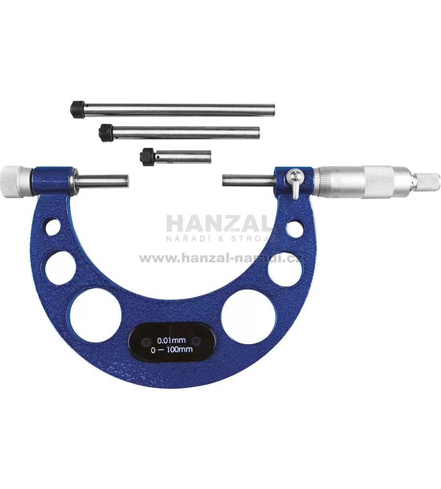 Mikrometr Provedení: Stupnice matně pochromovaná, měrky osazené tvrdokovem, třmen z lehkého kovu, lakovaný. S upínací pákou, regulací měrné síly… Celý popis