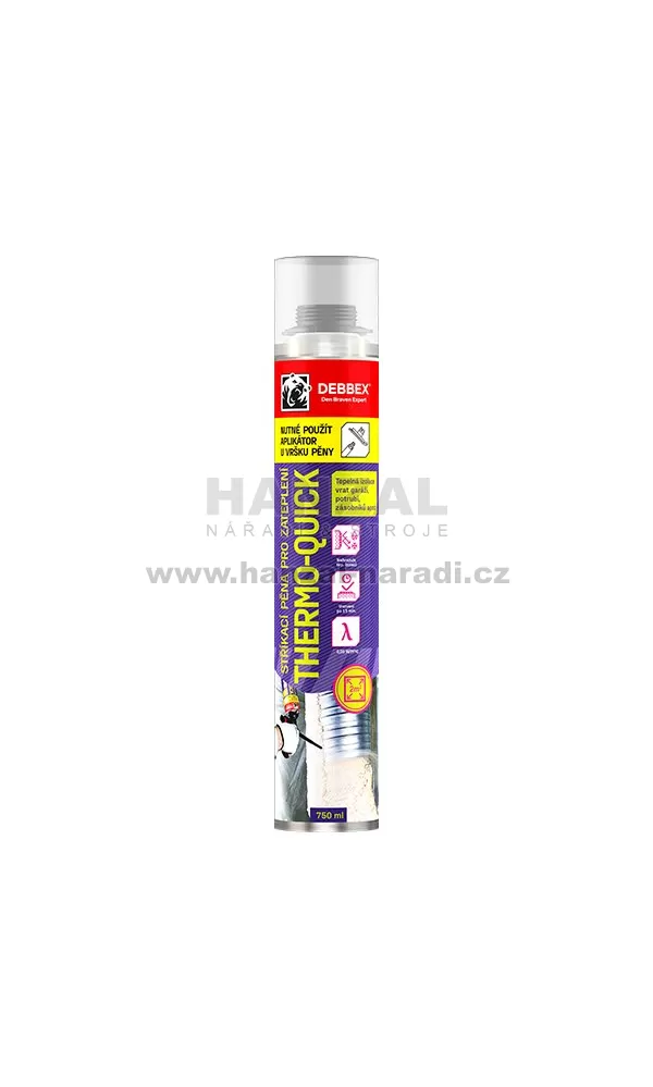 Je jednosložková polyuretanová pěna se speciálními aplikátory na trysku pistole pro sprejový efekt. Červená tryska je stropní a rozstřik je pouze na jednu stranu. Bílá tryska slouží pro klasickou aplikaci na svislé plochy.Slouží pro vysoce účinné tepelné a akustické izolace. Vhodná na nerovné povrchy a těžko dostupná místa. Zabraňuje kondenzaci a pomáhá předcházet tepelný mostům. Charakteristika sprejový efekt nahrazuje tepelnou izolaci vrstvení po 15 minutách vydatnost z jedné pěny – 2m 2 součinitel tepelné vodivosti – 0,03W(m*k) pomáhá předcházet tepelným mostům Použití vysoce účinná tepelná a zvuková izolace vhodná na nerovné a těžko dostupné povrchy tepelná izolace stěn, vrat garáží, potrubí, zásobníků apod. úspora nákladů na energie, účinná izolace zajištuje účinnou ochranu budovy před průvanem a vlhkostí