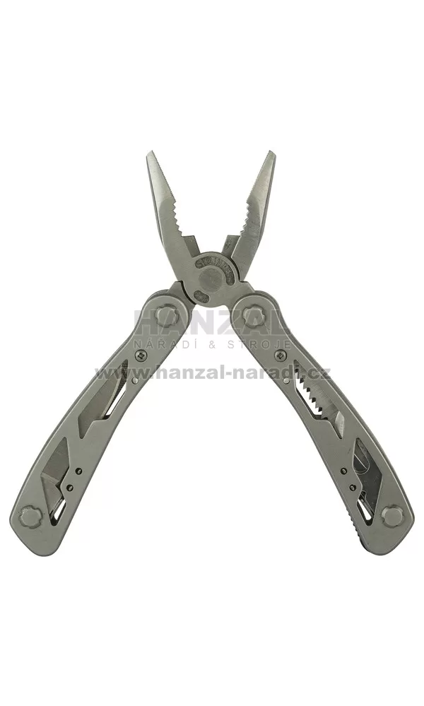 Multifunkční nástroj 12 v 1 Vlastnosti a výhody 12 v 1: univerzální kleště s vroubkovanými čelistmi, kleště s oblými čelistmi, šroubovák… Celý popis
