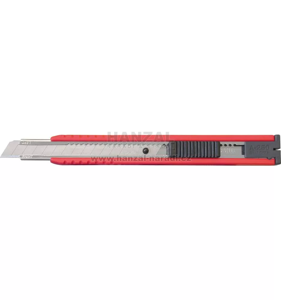 Provedení: Plastové pouzdro s kovovým vedením čepele. Fixace čepele tlačítkem, s mechanismem Auto-Lock. Dodává se s 1 odlamovací čepelí.