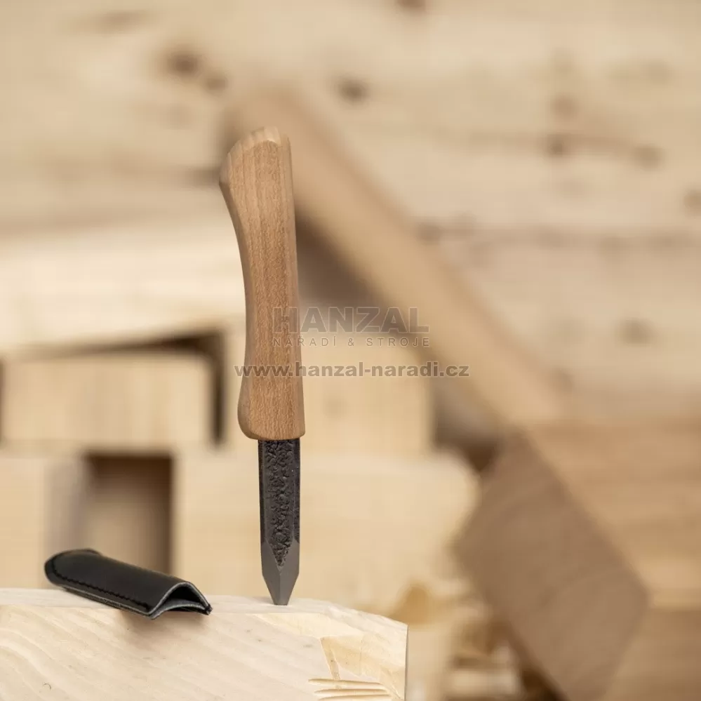 Kvalitní japonský řezbářský nůž s dřevěnou rukojetí a koženým pouzdrem. Vhodný pro běžné řezbářské práce, modelářství, krájení dýh, práci s bambusem,… Celý popis