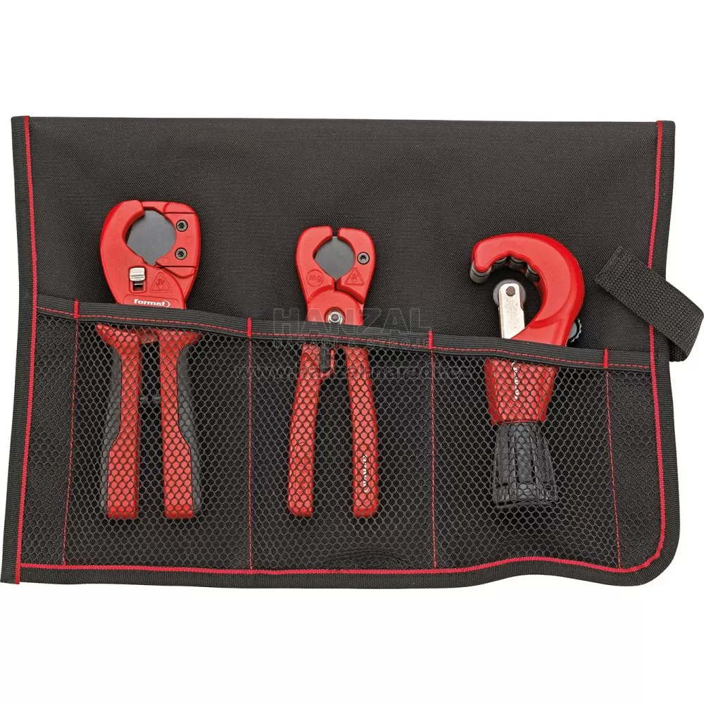 Tělo z tlakového odlitku z hořčíku, řezací kolečko vysoce legované a kalené oceli, vyměnitelné bez použití nástrojů. 4 vodicí válečky se zápichem pro řezání blízko obruby zabraňují odskoku nebo sklouznutí. Regulace tlaku se provádí pomocí vřetena s lehkým chodem, uloženého v oceli. Mimoto disponuje řezačka trubek vytažitelným odjehlovacím břitem. Velkorozměrová kovová rukojeť s náhradním řezacím kolečkem (obsažená v objemu dodávky). Pro exaktní řezání měděných, mosazných, hliníkových a tenkostěnných ocelových trubek.