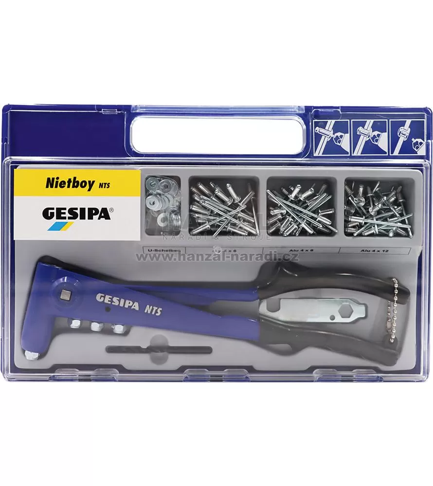 Sada trhacích nýtů Nietboy NTS a ruční nýtovací kleště NTS 136 ks. GESIPA