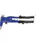 Provedení: Z kvalitního hliníkového tlakového odlitku s kovanými rameny kleští z chromvanadové oceli. Jednoduché nastavení zdvihu pomocí rýhované matice se stupnicí zdvihu zajišťuje bezpečné a úplné usazení nýtovací matice. Závitové trny lze rychle a jednoduše vyměnit bez použití nářadí. Ruční nýtovací kleště mají navíc ručně ovládané rukojeti a otevírací pružinu pro snadnou manipulaci.