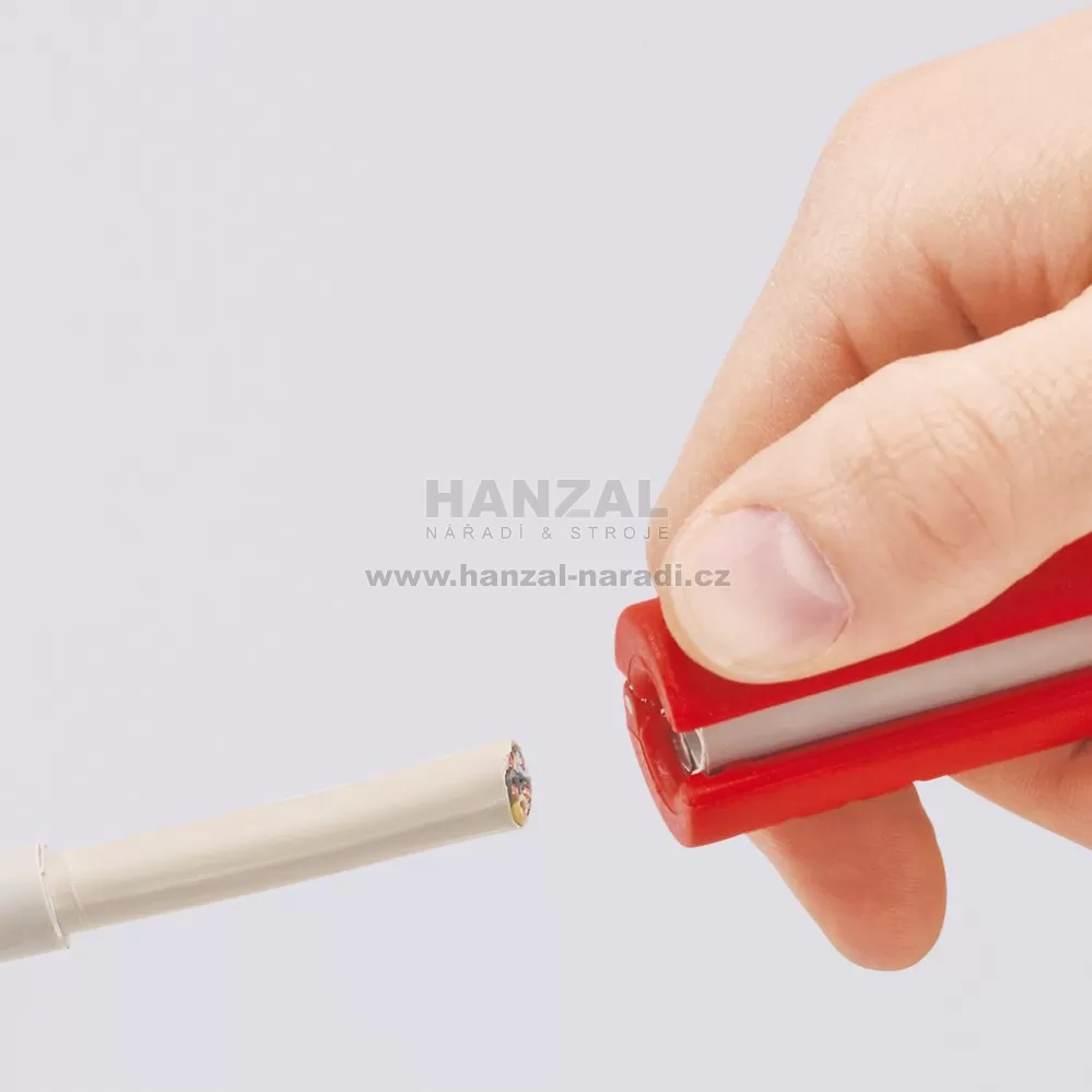 Vhodné k odstraňování plášťů a odizolování všech běžných kabelů kruhového průřezu a kabelů do vlhkého prostředí od Ø 8,0 do 13,0 mm (např. kabel NYM 3 x 1,5 mm² do 5 x 2,5 mm²). Také pro použití v krabicových odbočnicích a skříňkách rozdělovače. Dvoudílný otevírací nástroj pro odizolování. S otevírací pružinou a zavírací pojistkou. Aretace v uzavřené poloze.