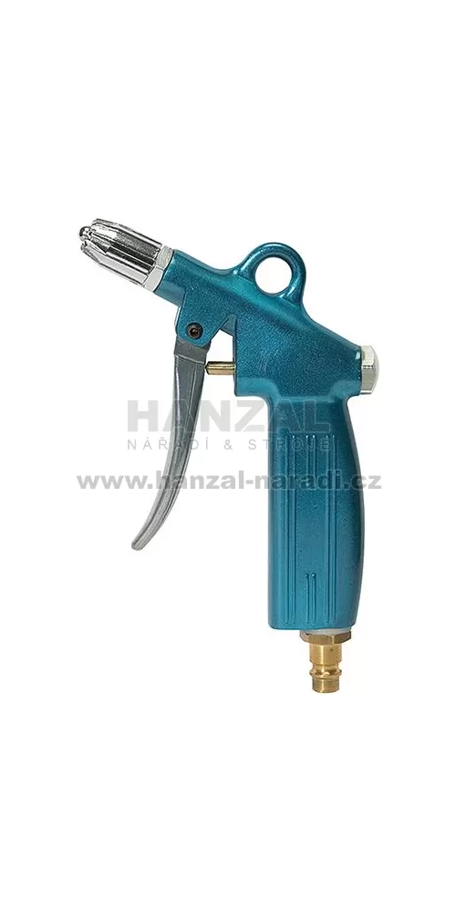 Foukací pistole s tryskou na tlumení hluku Provedení: Z hliníku, modře eloxovaná. Použití: Pro profukování a čištění strojů, obrobků, vrtaných… Celý popis