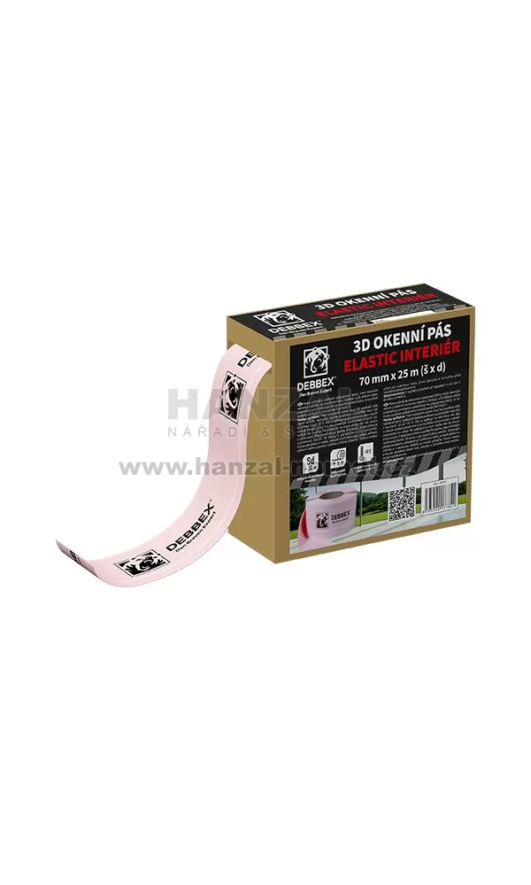 Páska určená k utěsnění připojovací spáry mezi okenním rámem a ostěním na straně interiéru. Zajišťuje vyšší difúzní otevřenost a zabraňuje pronikání vodních par do připojovací spáry. Je součástí systému splňující montáž dle ČSN 74 6077. Charakteristika páska je opatřena silným lepidlem pro spojení s většinou stavebních podkladů celoplošná lepicí vrstva lepicí vrstvy na obou stranách pásky pro montáž na čelo rámu i bok rámu snadno omítnutelná jednoduchá montáž díky rozděleným lepícím linerum balení umožňuje snadné odvíjení a ochranu pásky Postup aplikace Před nalepením pásek musí být podklad vždy řádně očištěn. Aplikační teplota podkladu i prostředí musí být v rozmezí -10 až +35 °C.Pás se aplikuje na rám okna tak, aby v rozích vznikal přesah min. 2 cm pro snadnější vytvarování v rozích (vytvoření tzv. ouška). Po nalepení na okno vložte rám do otvoru a vyrovnejte. Připojovací spáru vyplňte PU pěnou, doporučená je systémová Bílá pružná pěna ELASTIC 3D , a po vyzrání pěnu zařízněte. Vytvarujte pásku k ostění, odlepte krycí voskovaný pásek a přitlačte pásku k ostění a za pomocí válečku ji řádně přitlačte. Lícovou stranu překryjte omítkou nebo jinak zakryjte a ochraňte před mechanickým poškozením.